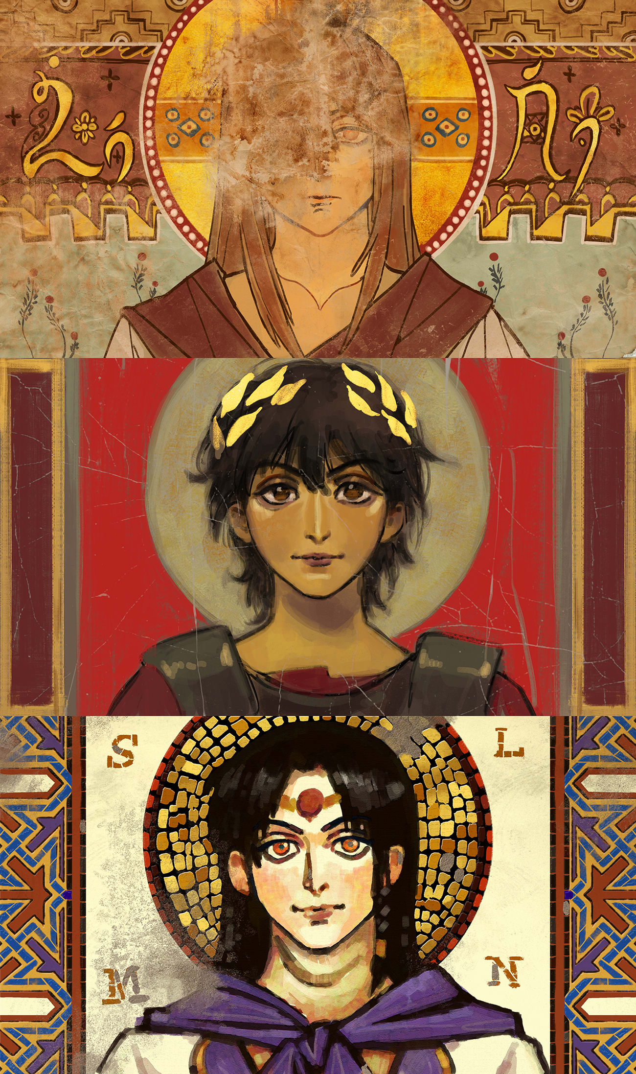 Human depiction the Child of God's three avatars. As their divinity declined through each incarnation, so did their humanity grew.